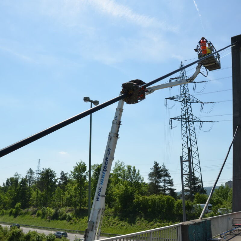 Die Personenüberführung Oberwies wurde einer vertieften Zustandsuntersuchung sowie einer detaillierten statischen Überprüfung unterzogen. Neben den Fragen der Anprall- und der Erdbebensicherheit lag hierbei ein besonderer Schwerpunkt auf der Beurteilung der Schrägkabel hinsichtlich Tragsicherheit, Dauerhaftigkeit und Ermüdung. Für die materialtechnologische Untersuchung der Schrägkabel und ihrer Verankerungen wurde daher ein umfassendes Untersuchungsprogramm u.a. bestehend aus magnetinduktiven Prüfungen sowie Sondageöffnungen an allen Kabeln durchgeführt.