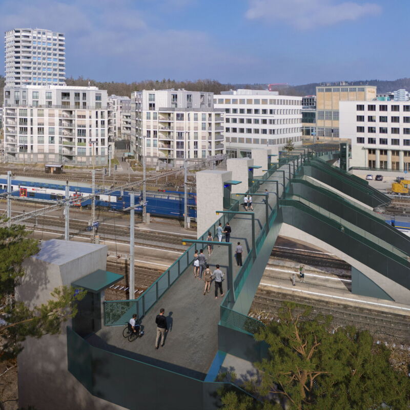 Der öffentliche Gestaltungsplan Bülach Nord sieht für Fussgänger und Radfahrer eine neue Verbindung der geplanten Wohn- und Arbeitsplatzgebiete mit dem Naherholungsgebiet vor. Die zu erstellende Passerelle quert das Gleisfeld beim Bahnhof Bülach, wobei durch Perronabgänge in Form von Treppen und Liften ein neuer Direktzugang zu den Perrons geschaffen werden kann.