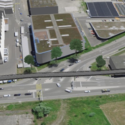 dsp wurde beauftragt, die Variante einer Velobrücke auf Machbarkeitsstufe so zu vertiefen, dass ein Variantenvergleich hinsichtlich Komforts, erforderlicher Anpassungen und Baumassnahmen, Kosten, Bauzeit sowie Bauen unter Betrieb möglich wird. Der bestehende Werkhof sowie die Ausnahmetransportroute bildeten dabei wesentliche Randbedingungen für die Entwicklung der horizontalen und vertikalen Linienbrückengeometrie.