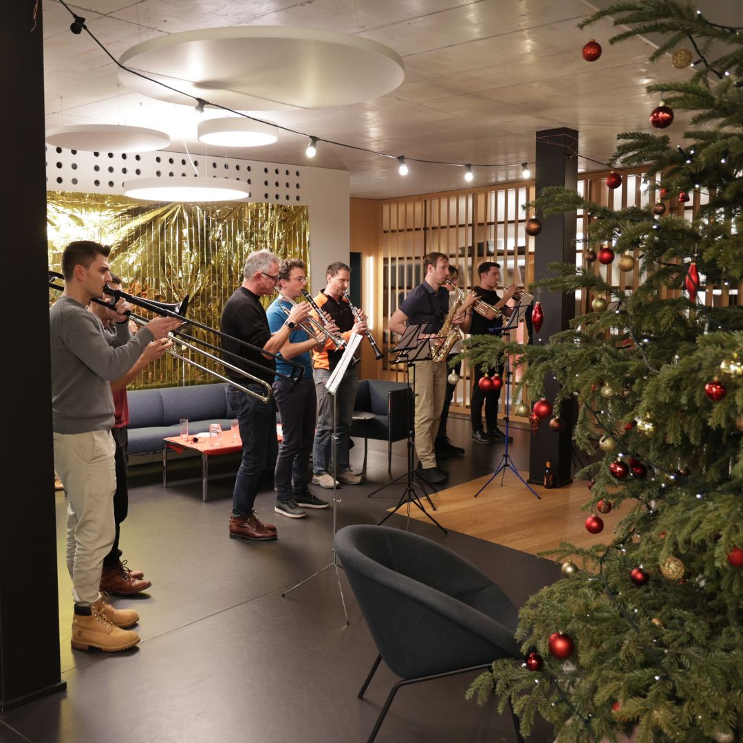 Ein besonderes Highlight war die musikalische Darbietung unserer talentierten hausinternen 10-köpfigen Band. Kollegen und Kolleginnen, die normalerweise Zahlen jonglieren oder Projekte managen, entfalteten ihr musikalisches Talent und versetzten uns mit schönen Weihnachtsliedern in festliche Stimmung. 🎶