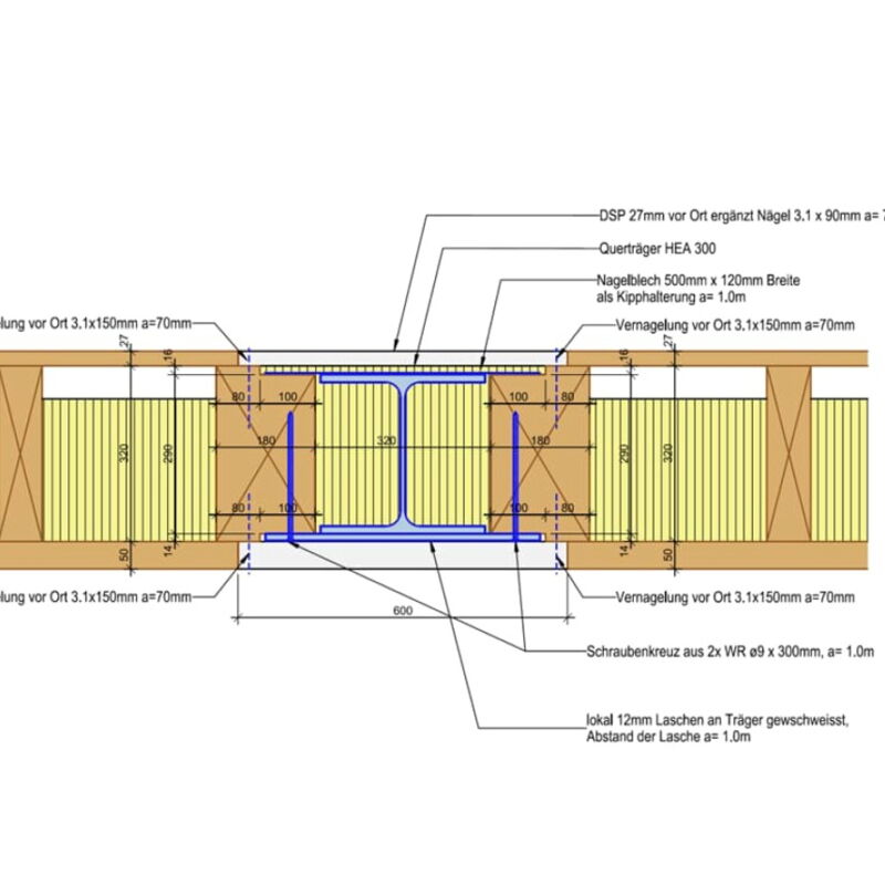 Phase 31 - 53: Baugrube, Fundation, Tragwerk in Beton, Stahl und Holz, Risikoanalyse aus Bahnanprall, Erschütterungs- und Körperschallimmissionen aus Bahnverkehr, BIM - Projektstand Phase 41 abgeschlossen