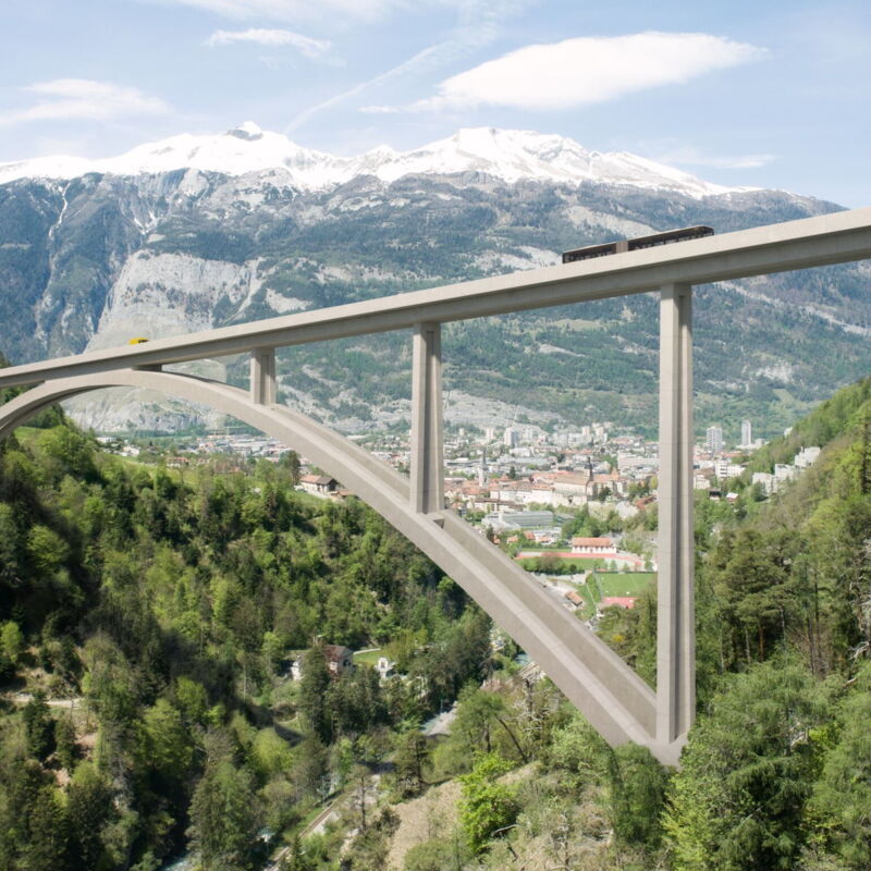 Für den neuen Anschluss an der Schanfiggerstrasse (Chur) wurde eine Bogenbrücke aus Beton mit einer Gesamtlänge von 542 m vorgeschlagen.