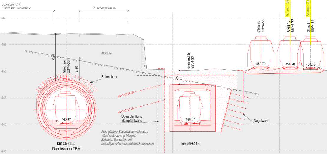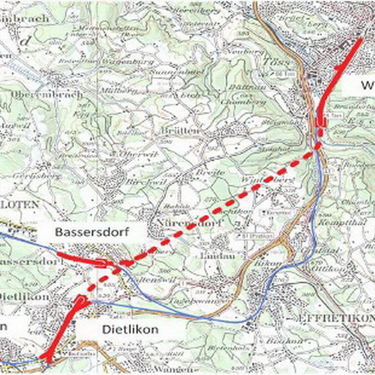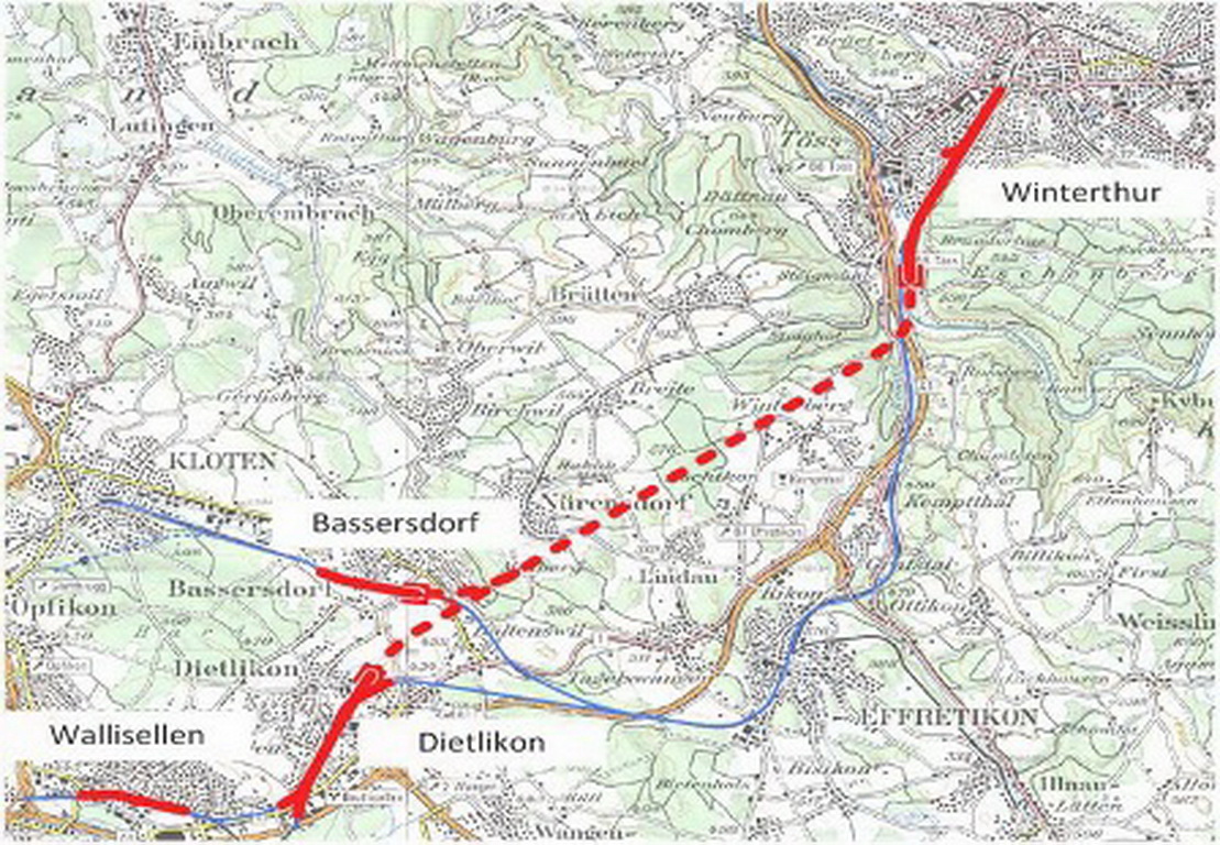 So wird zwischen Zürich-Oerlikon und Wallisellen im Hinblick auf eine niveaufreie Auskreuzung der Linien Wallisellen-Dübendorf und Wallisellen-Dietlikon eine neue Überwerfung vorgesehen. Der Bahnhof Wallisellen wird auf einen Bahnhof im Richtungsbetrieb mit zwei Mittelperron ausgebaut. Auf der Westseite in Dietlikon folgt wiederum ein neues Überwerfungs- oder Unterquerungsbauwerk zur niveaufreien Querung der Linie Stettbach-Dietlikon. In Bassersdorf taucht die neue Linie im Bahnhofbereich ab, um in Richtung des Portals des Brüttenertunnels zu führen. Die Bahnanlage in Winterthur zwischen Töss und dem Bahnhof wird praktisch komplett neu gebaut und als massgebende Bauwerke gelten das Portalbauwerk, die neuen Tössbrücken, die Überwerfung Neumühle und die Unterquerung Storchen mitten im Gleisfeld des Bahnhofs Winterthur.