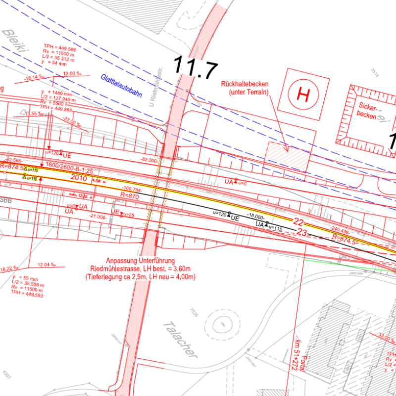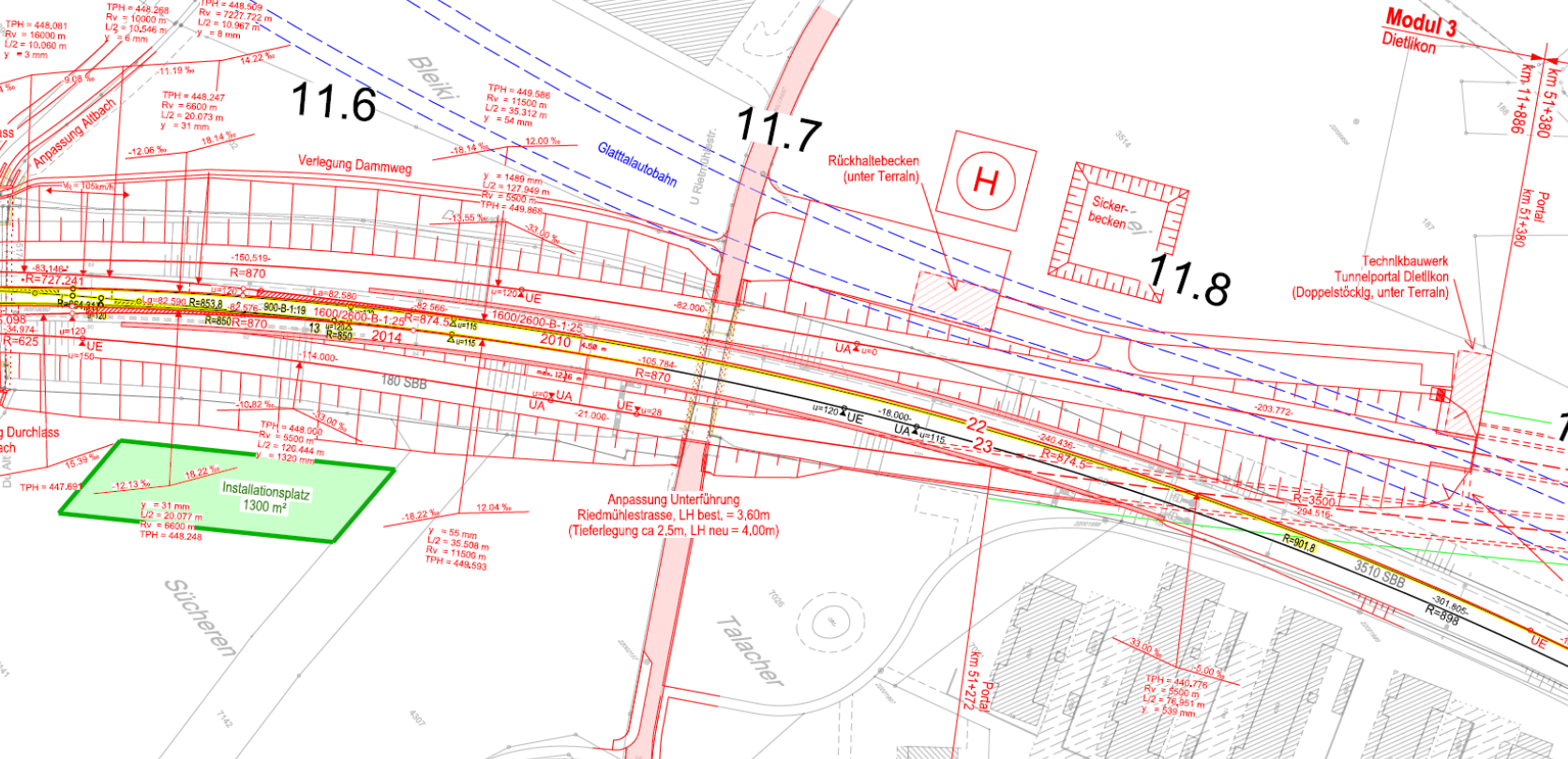 Damit die neue Bahnlinie durch den Brüttenertunnel optimal in das Bahnnetz integriert werden kann, müssen die Anschlussbereiche komplett neu disponiert, d.h. umgebaut werden.